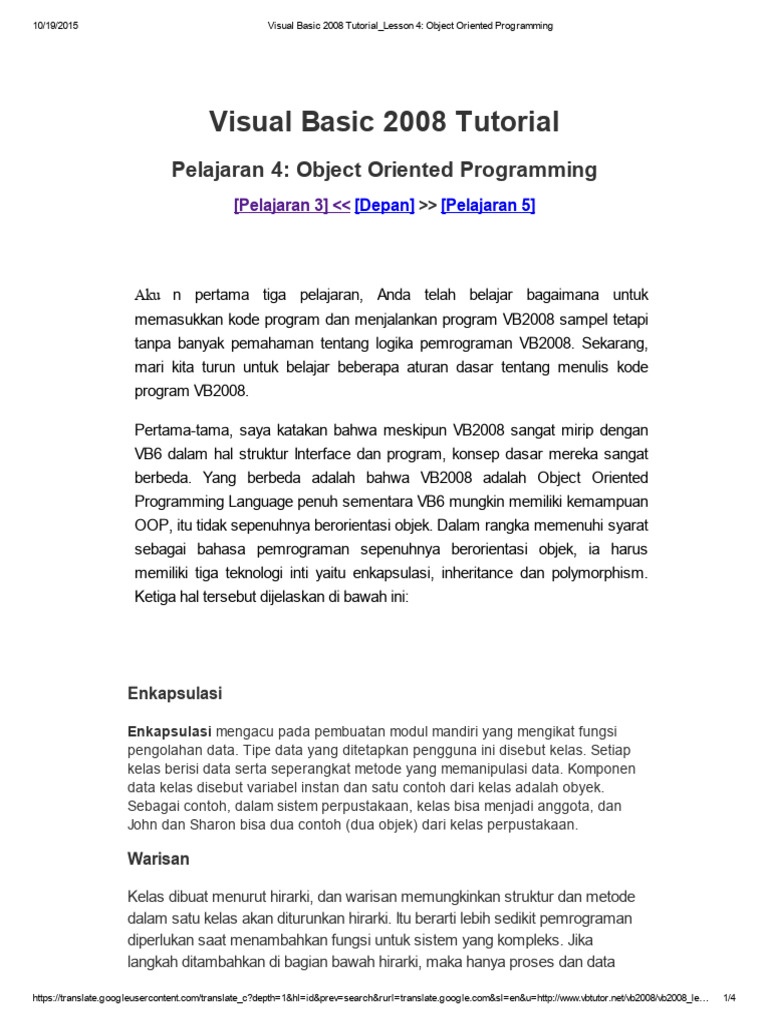 Visual Basic 2008 Tutorial_Lesson 4_ Object Oriented Programming | PDF
