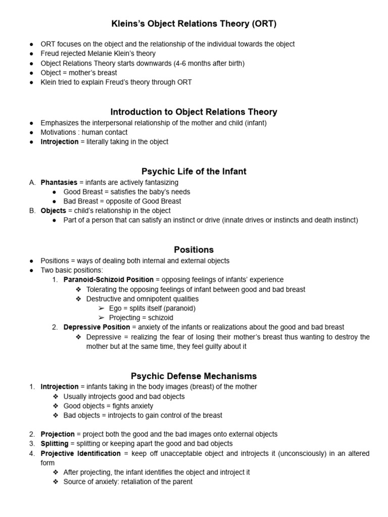 Object Relations Handout PDF | PDF | Object Relations Theory | Id