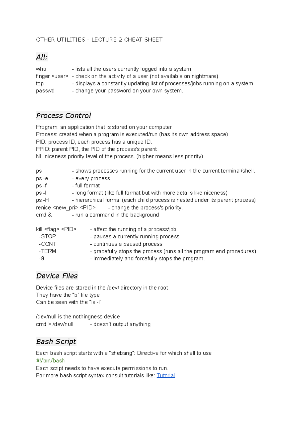 OTHER UTILITIES LECTURE 2 CHEAT SHEET - Studocu