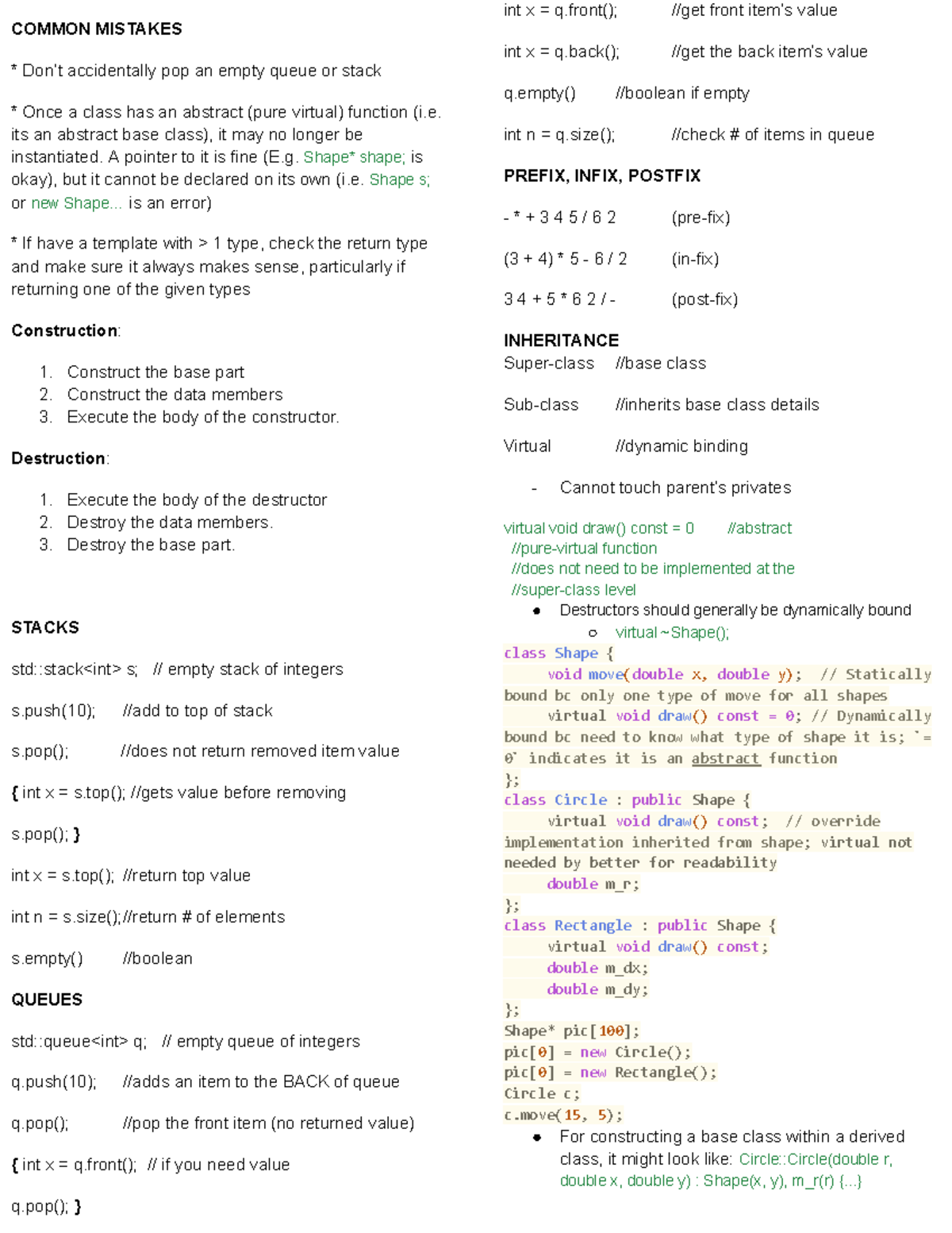 Cs 32 Midterm 2 Cheat Sheet: Common Mistakes in Stacks & Queues - Studocu