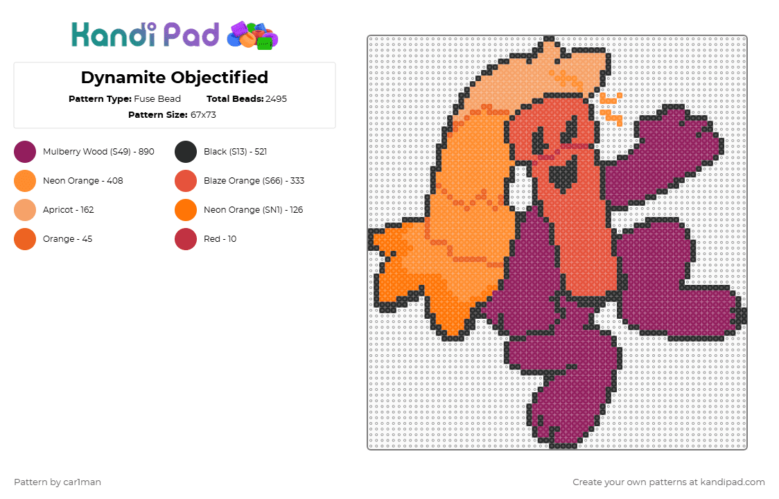Dynamite Objectified Fuse Bead Pattern - Kandi Pad | Kandi Patterns ...