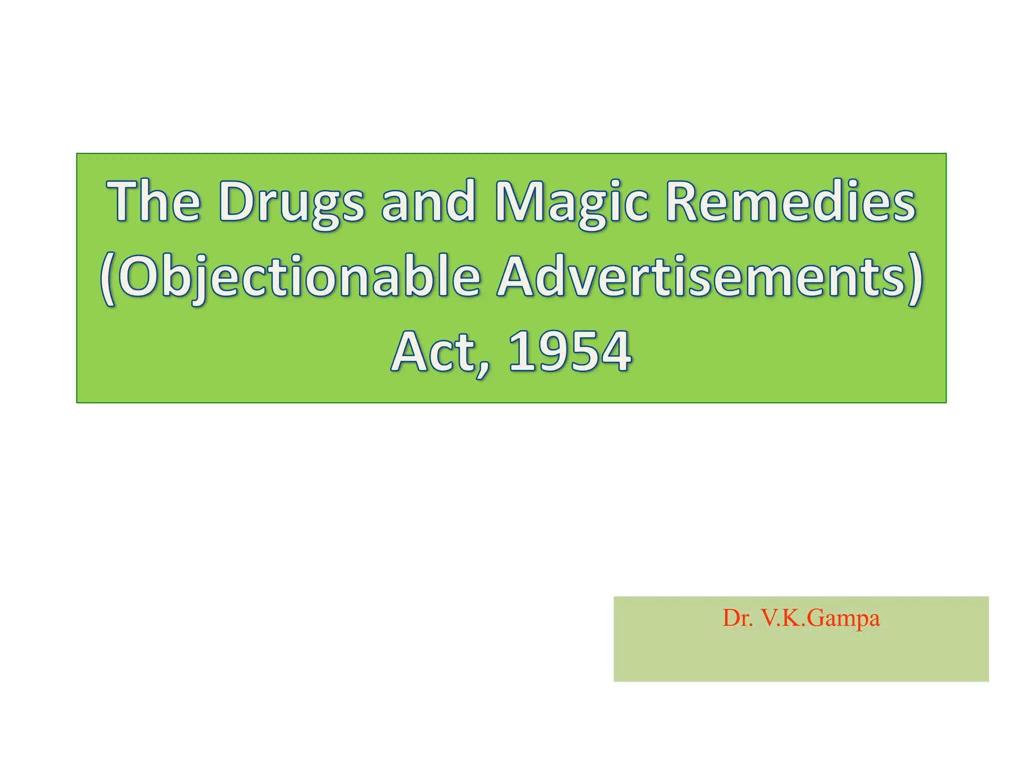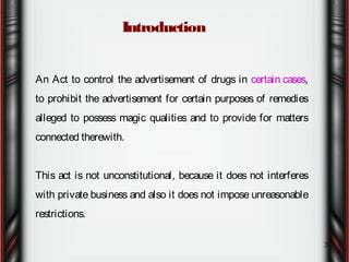 Drugs and magic remedies act (objectionable advertisements) 1954 | PPT