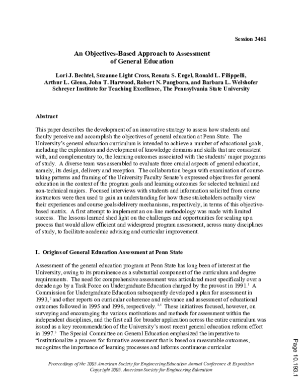 (PDF) An Objectives Based Approach To Assessment Of General Education ...