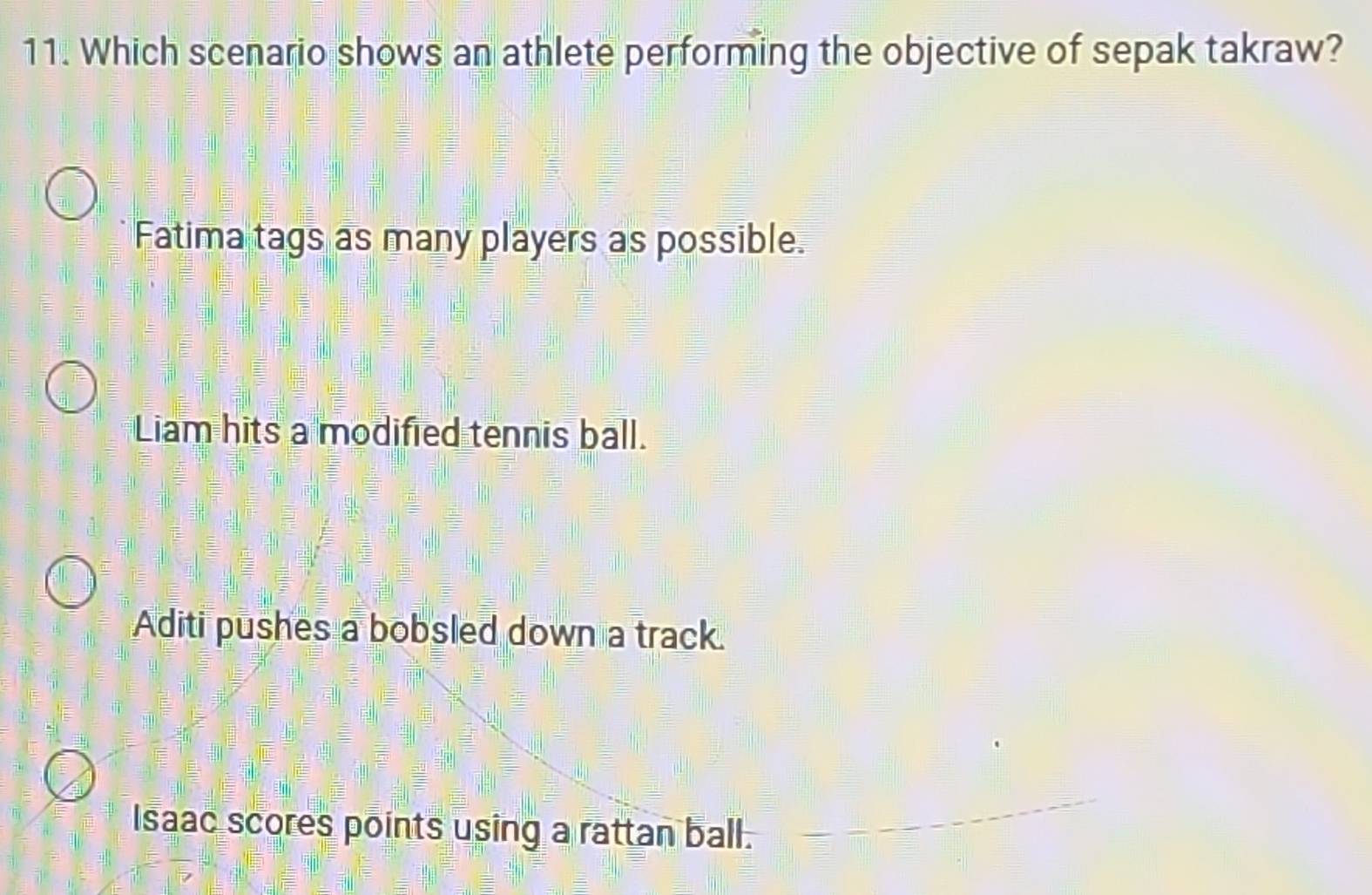 Solved: Which scenario shows an athlete performing the objective of ...