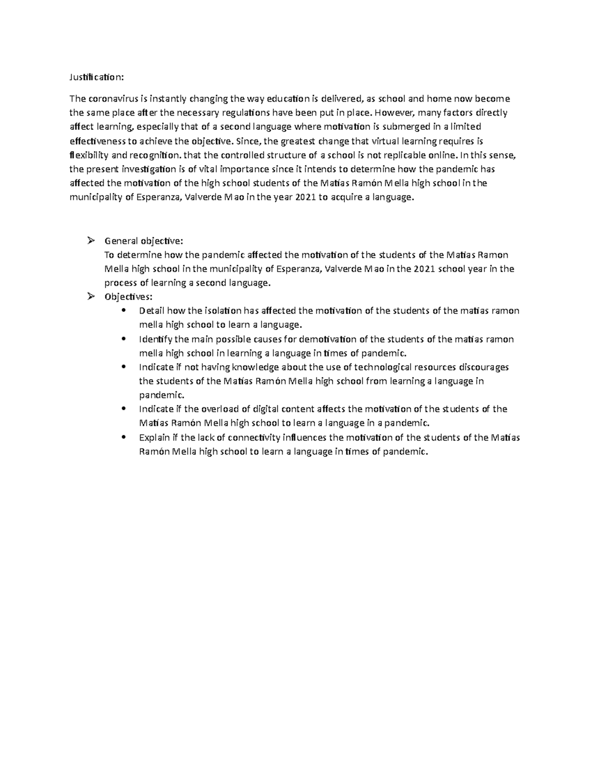 Justification and objectives - Justification: The coronavirus is ...