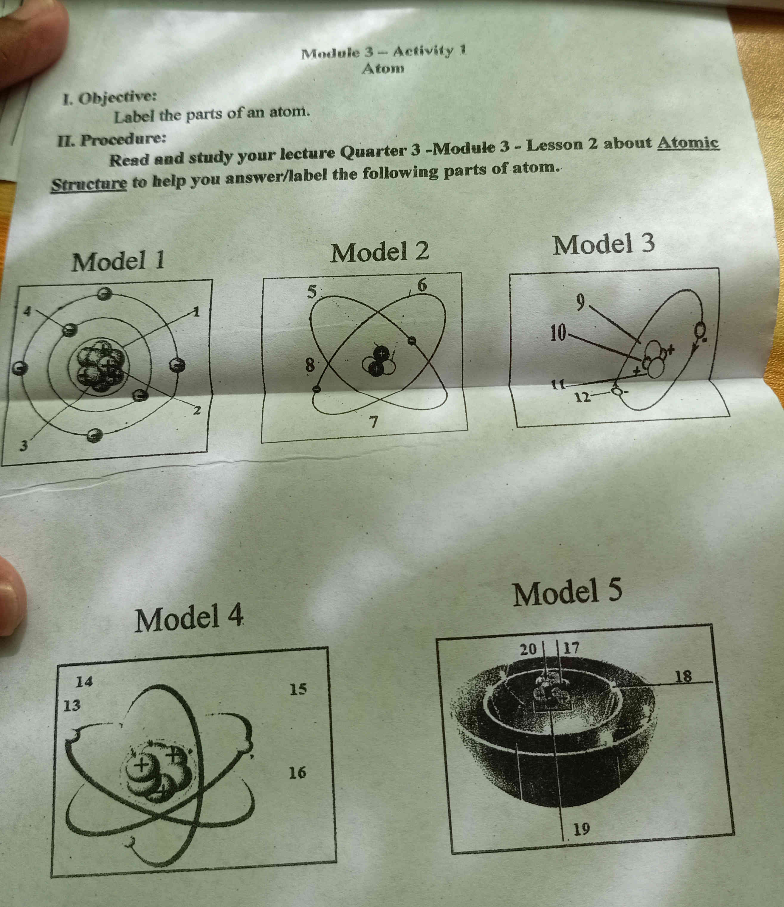 Module 3 - Activity 1 Atom I Objective Label | StudyX