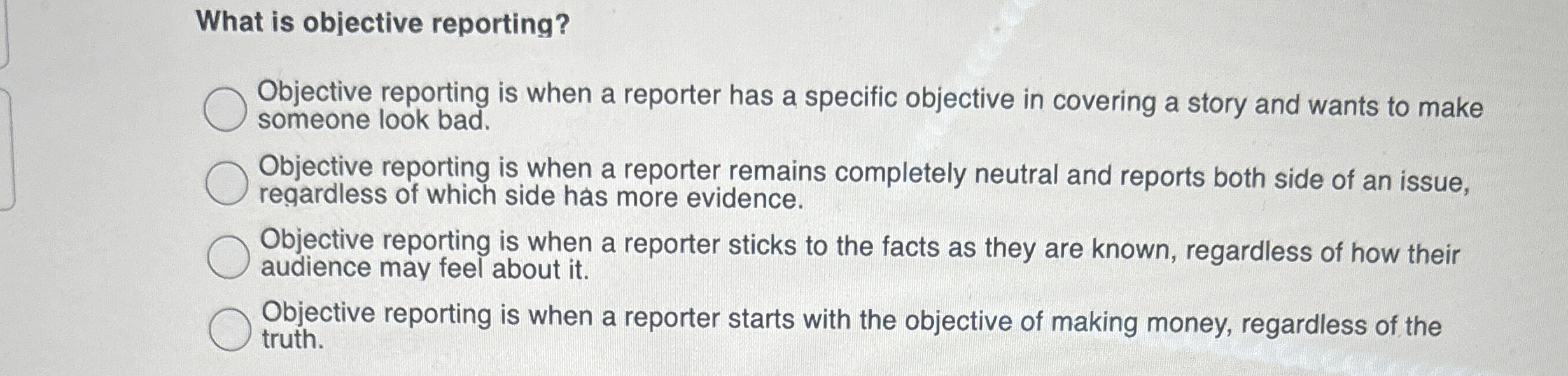 Question 4 of 10 What is objective reporting? A. Reporting with ...