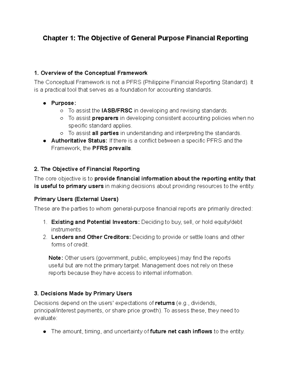 Chapter 1: Overview of General Purpose Financial Reporting Objectives ...