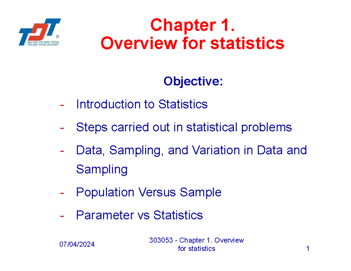 C1 - ádas - Chapter 1. Overview for statistics Objective ...