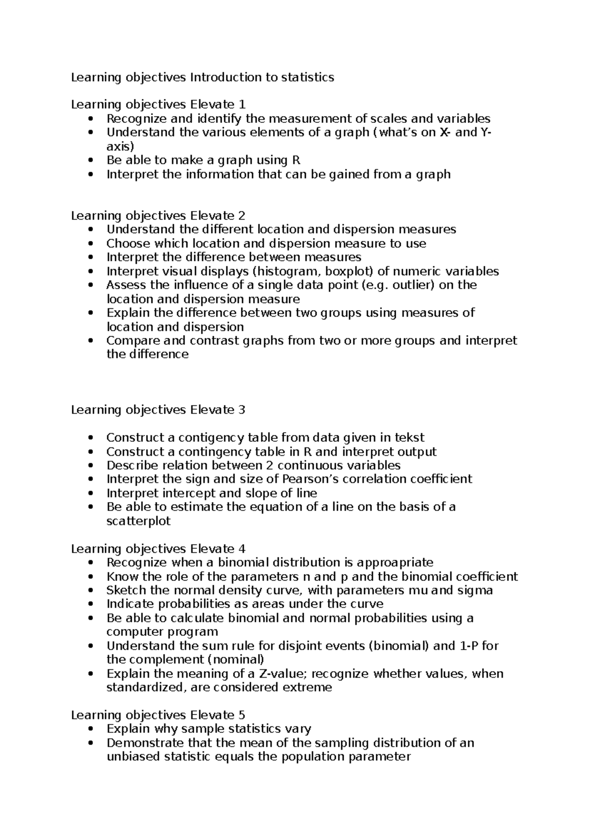Learning Objectives for Intro to Statistics (STAT 101) - Studeersnel