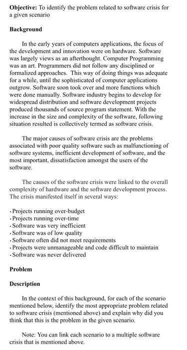 Solved Objectives To understand the importance of Software | Chegg.com
