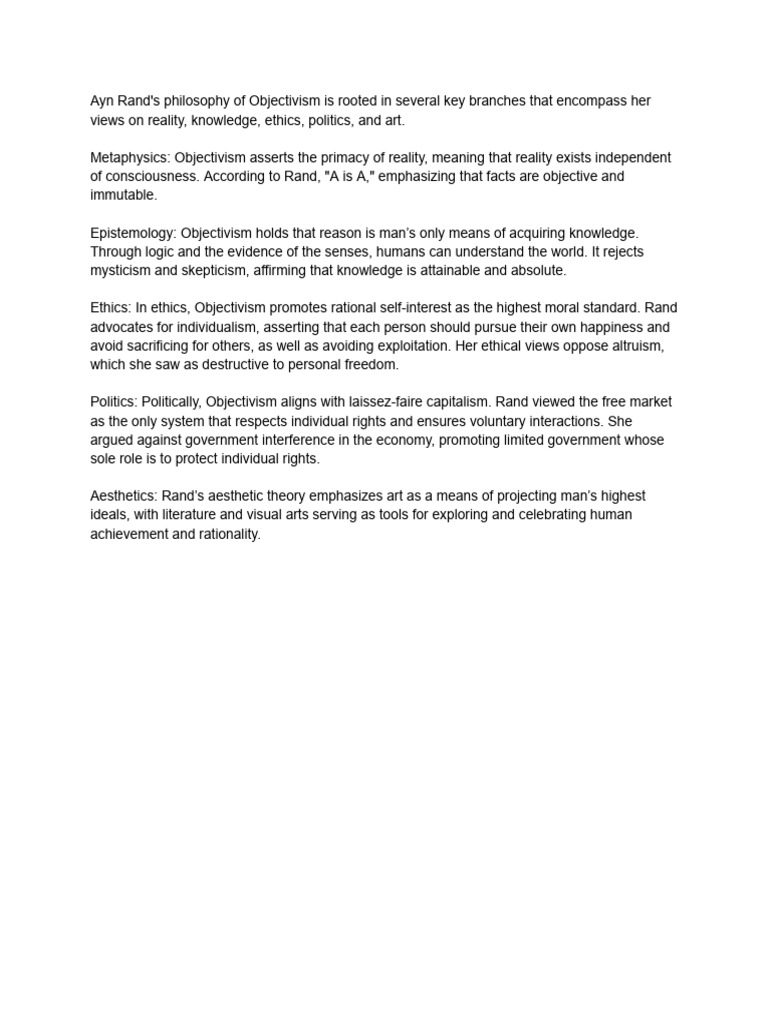 Objectivism Summary | PDF | Objectivism (Ayn Rand) | Philosophy