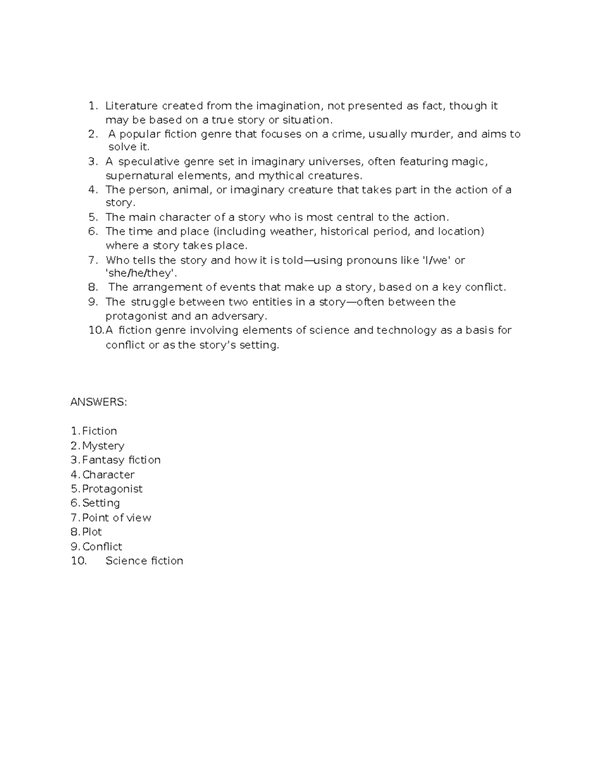 ENG101: Key Literary Terms and Definitions for Fiction Genres - Studocu
