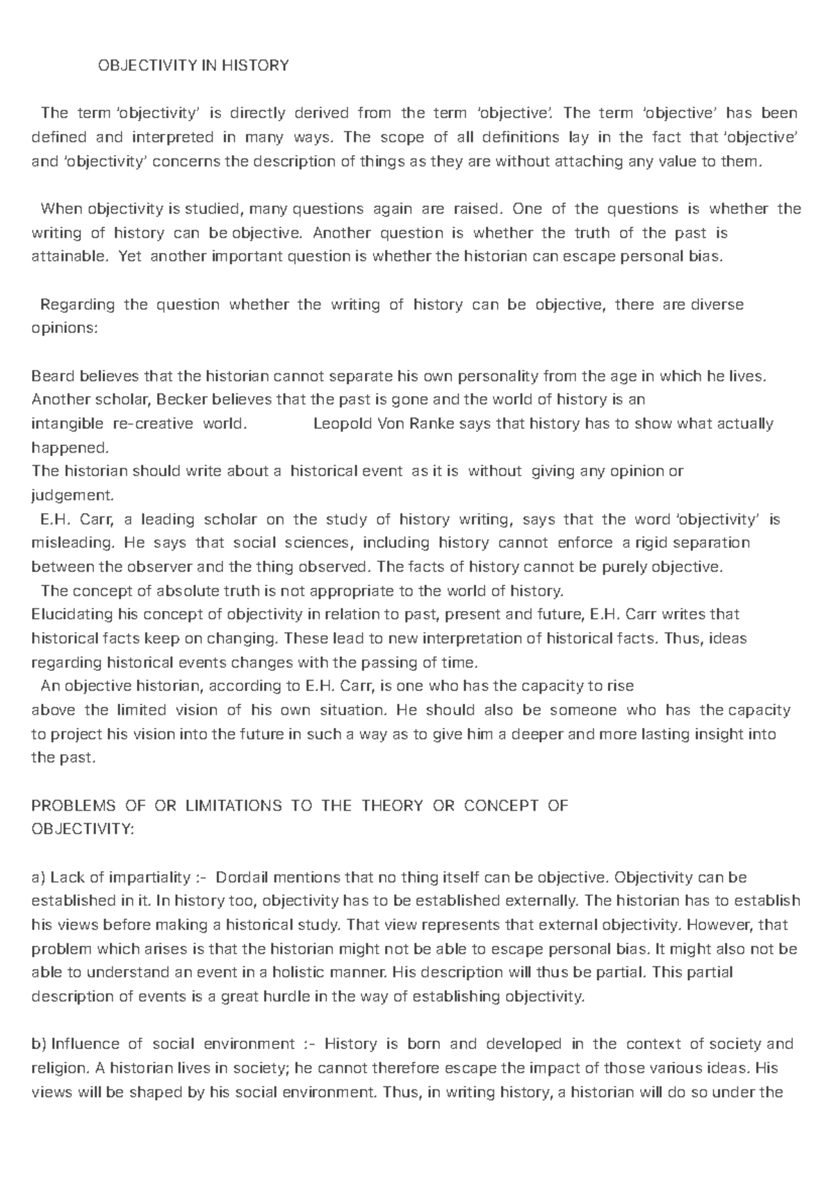 Objectivity in History: Challenges and Perspectives on Bias - Studocu