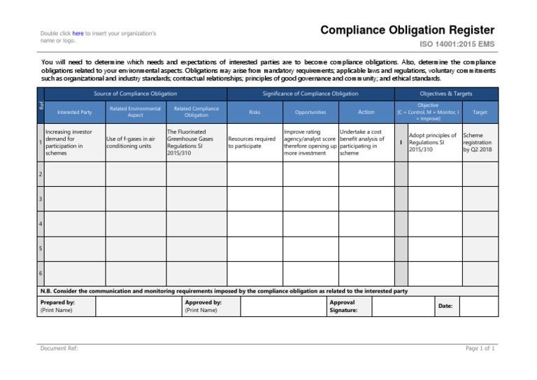 ISO 14001 Compliance Obligation Register | PDF | Regulatory Compliance ...