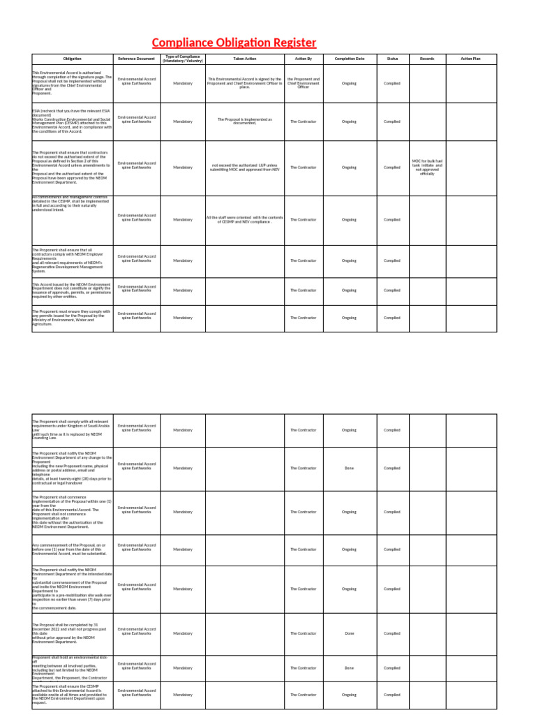 (TEMPLATE) ESH Compliance Obligations Register | PDF