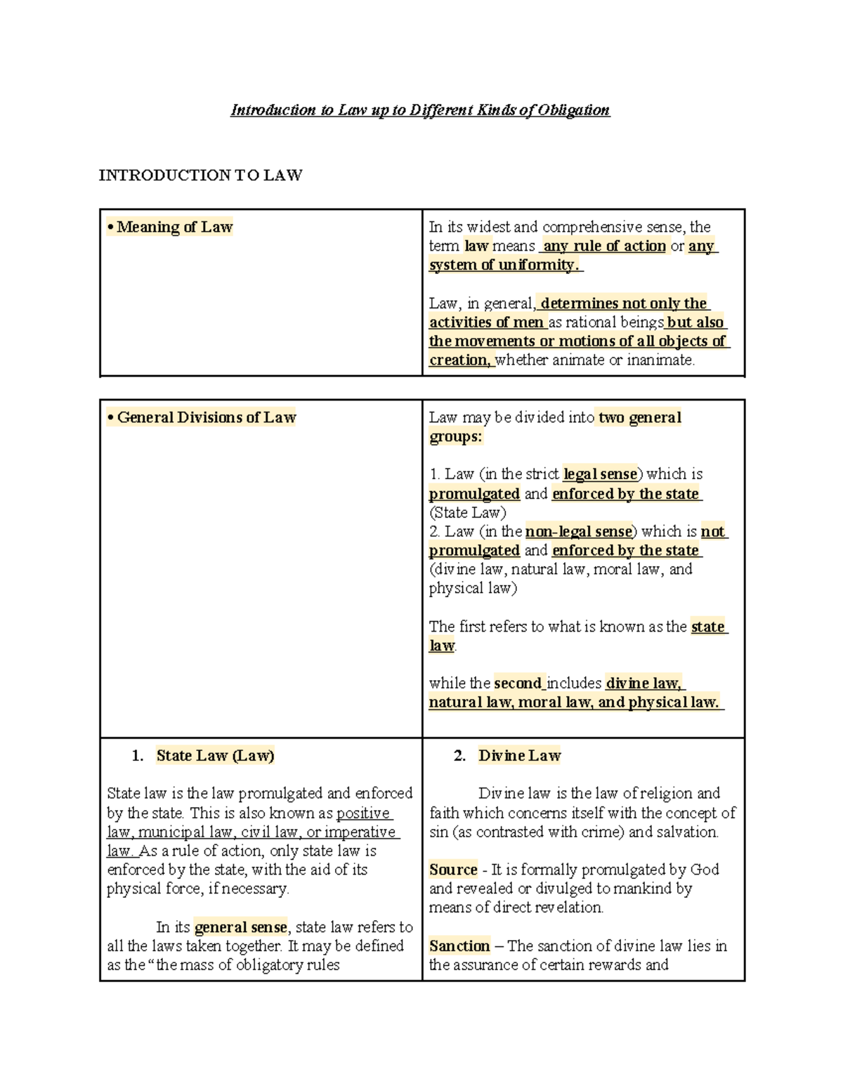 Introduction to Law up to Different Kinds of Obligation - Introduction ...