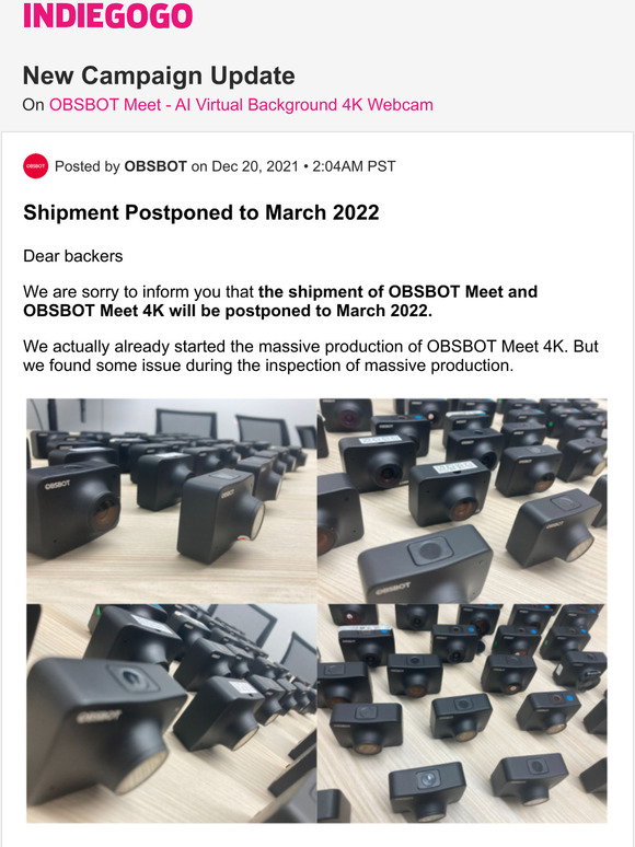 Indiegogo: Update #3 from OBSBOT Meet - AI Virtual Background 4K Webcam ...