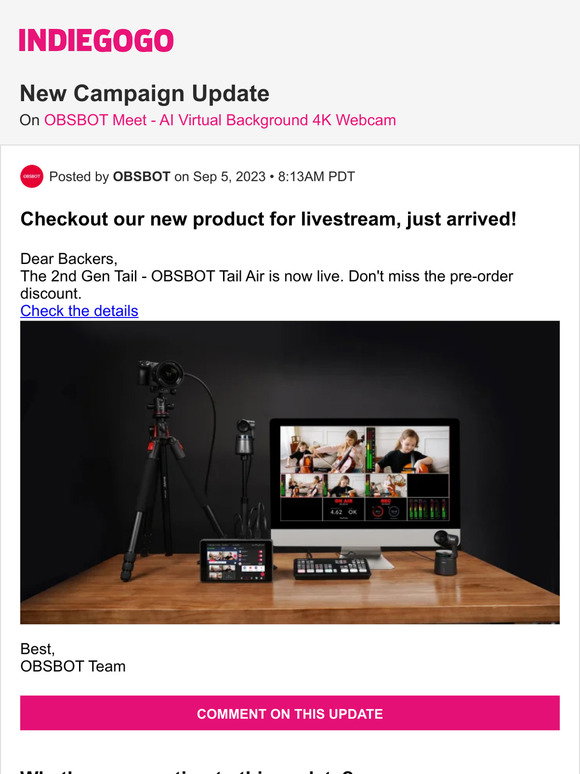 Indiegogo: 📢 Update #14 from OBSBOT Meet - AI Virtual Background 4K ...