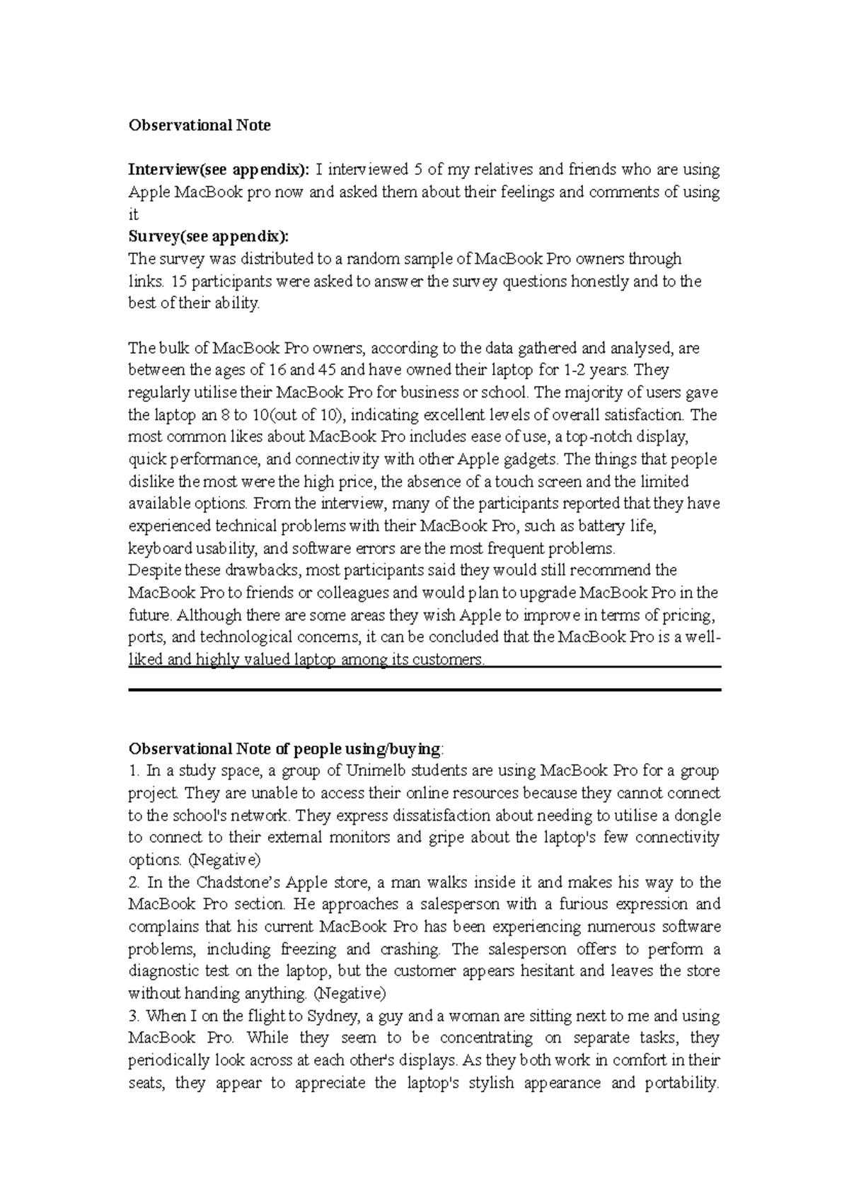 Observational Note - Observational Note Interview(see appendix): I ...