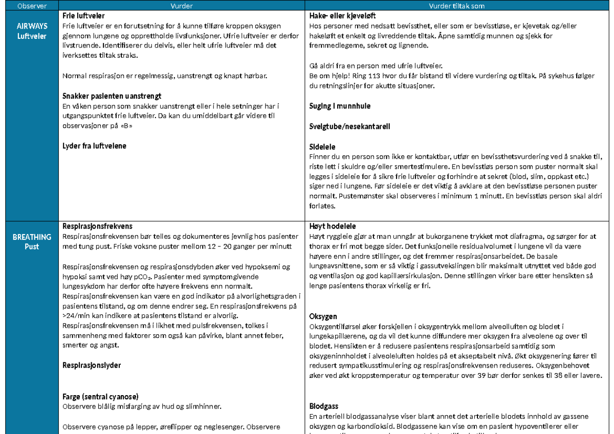 Observering av Frie Luftveier: ABCDE Oversikt for Akutt Hjelp - Studocu