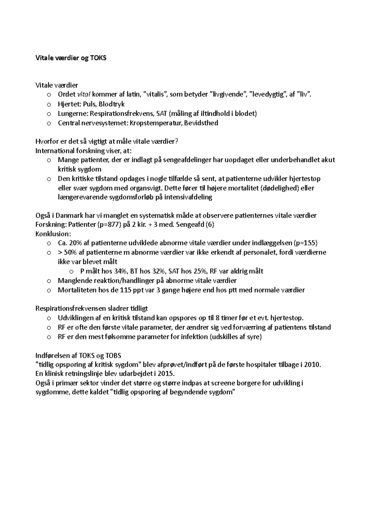 Vigtige Værdier & TOKS, 1. Semester - Observering af Patienters ...