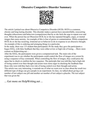 Ocd Essay | Obsessive–Compulsive Disorder | Mental And Behavioural ...