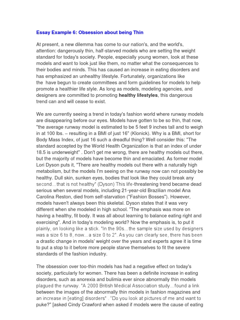 Essay Example 6: Obsession About Being Thin | PDF | Eating Disorder ...