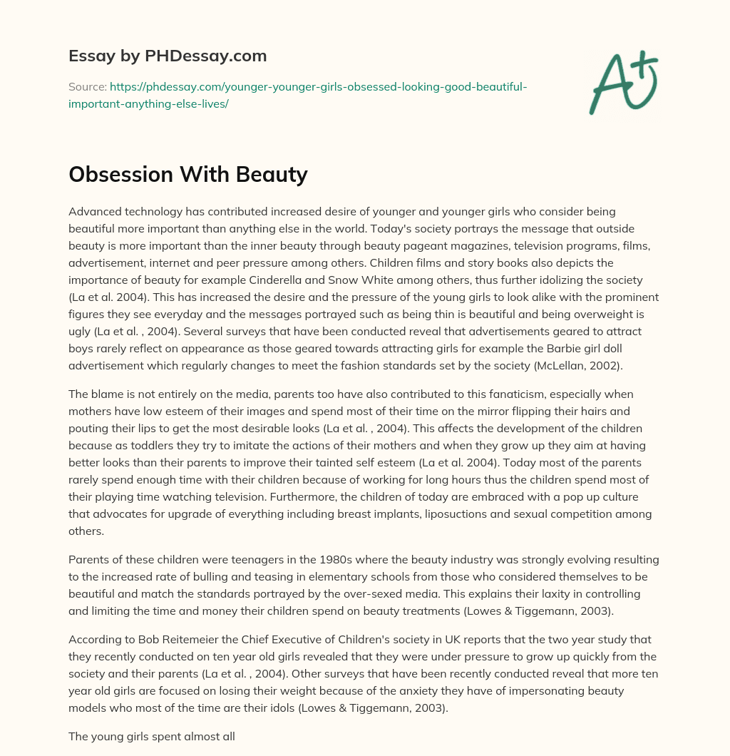 Obsession With Beauty - PHDessay.com