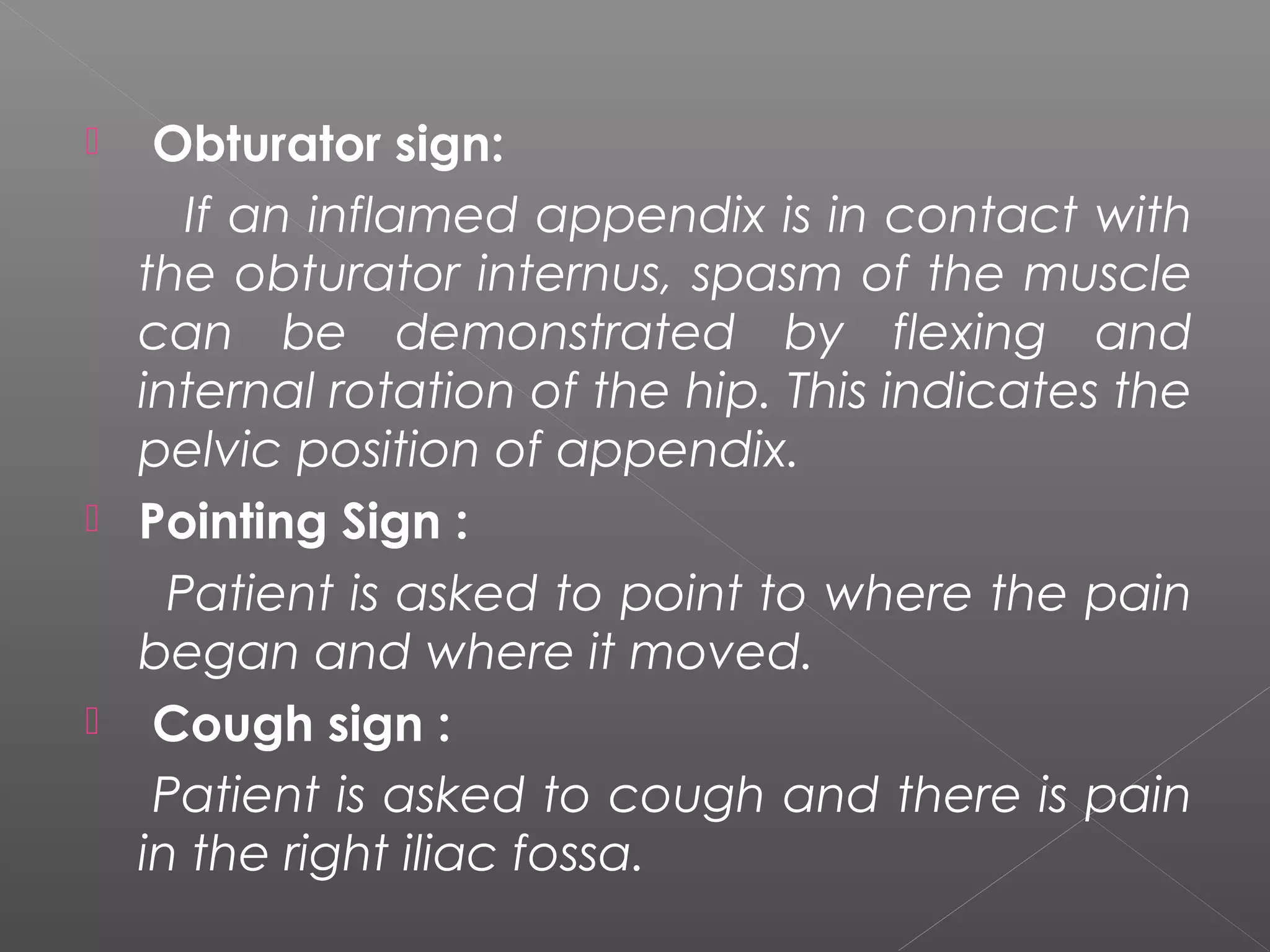 Signs of Acute Appendicitis, ROVSING, PSOAS, OBTURATOR, McBurney's ...
