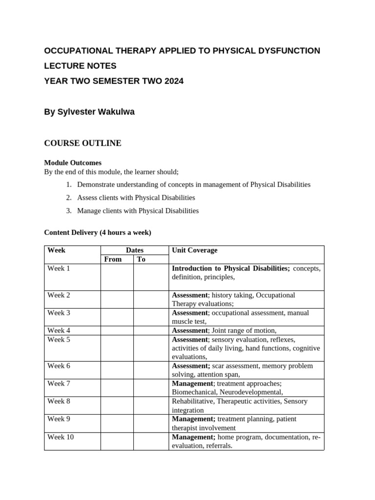 SOLUTION: Occupational Therapy Notes: Introduction to Physical ...