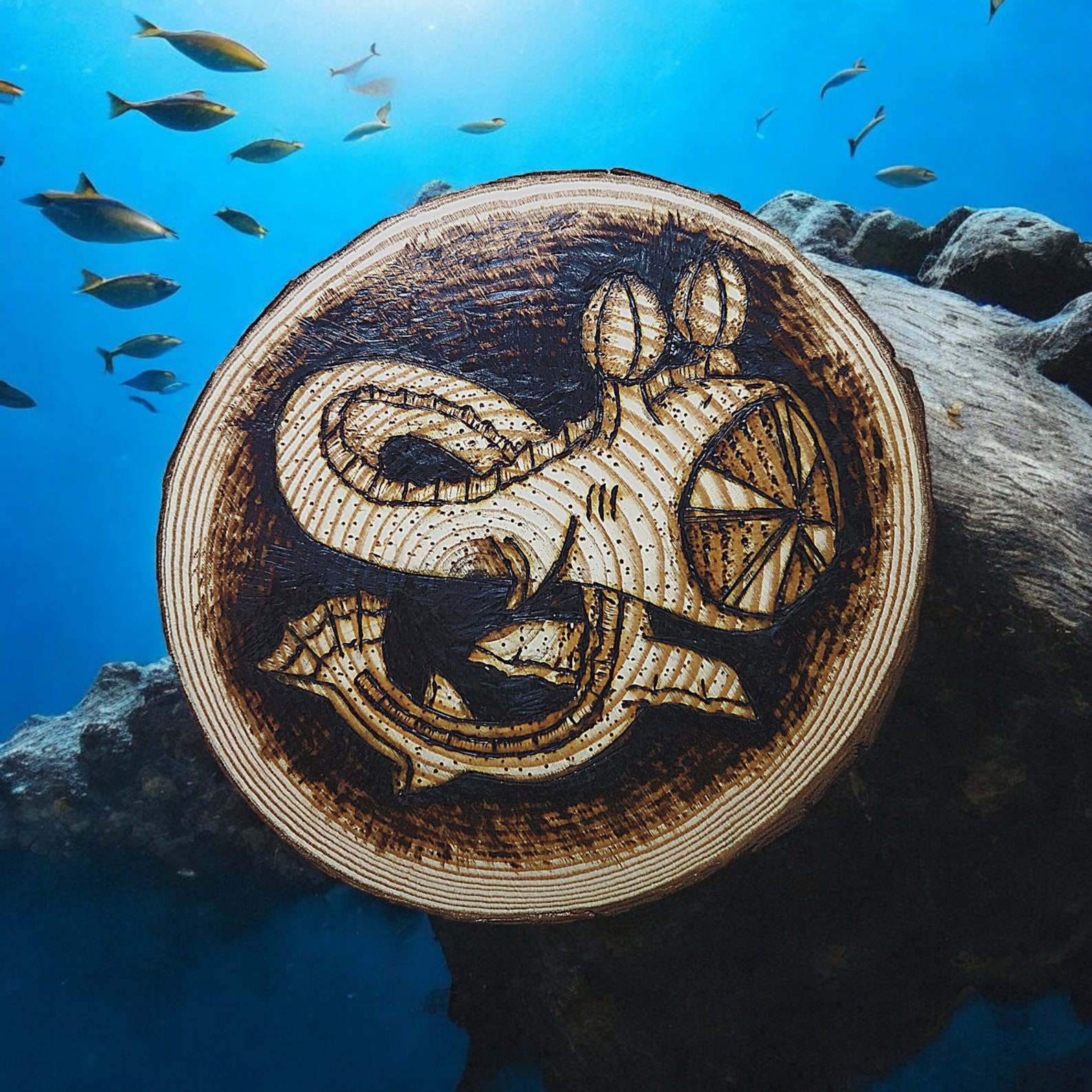 Handmade Pyrography Seascape: Wood Burned Ocean Life Wall Art - Etsy