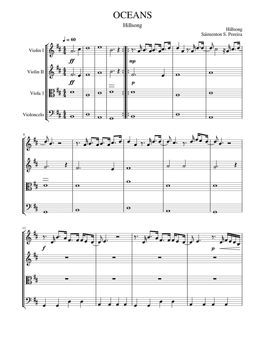 Oceans - string quartet - Hillsong United - quarteto cordas - partitura ...