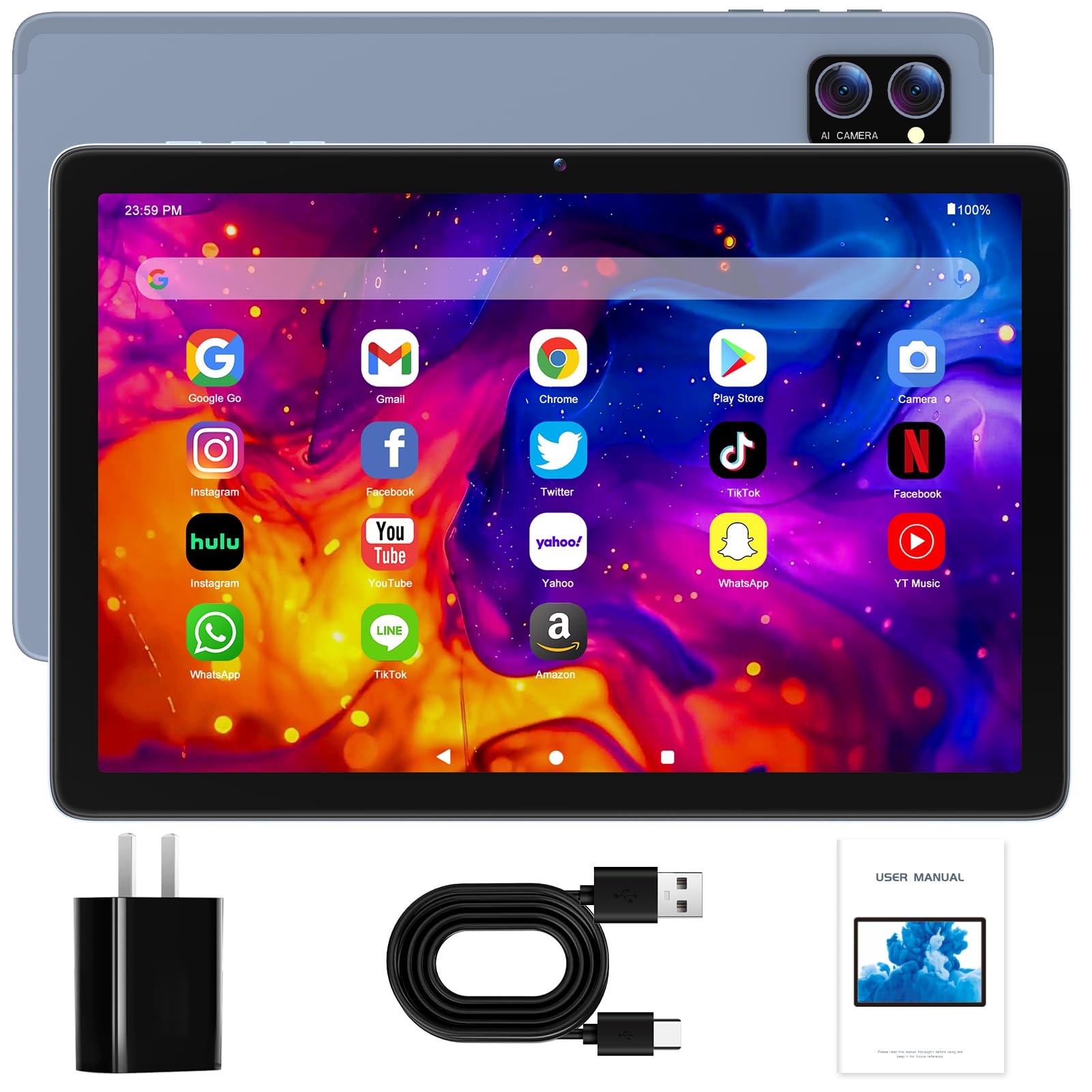 Linsay Octa Core 10.1" Tablet, 128GB Storage, Android 15, Bundle with ...