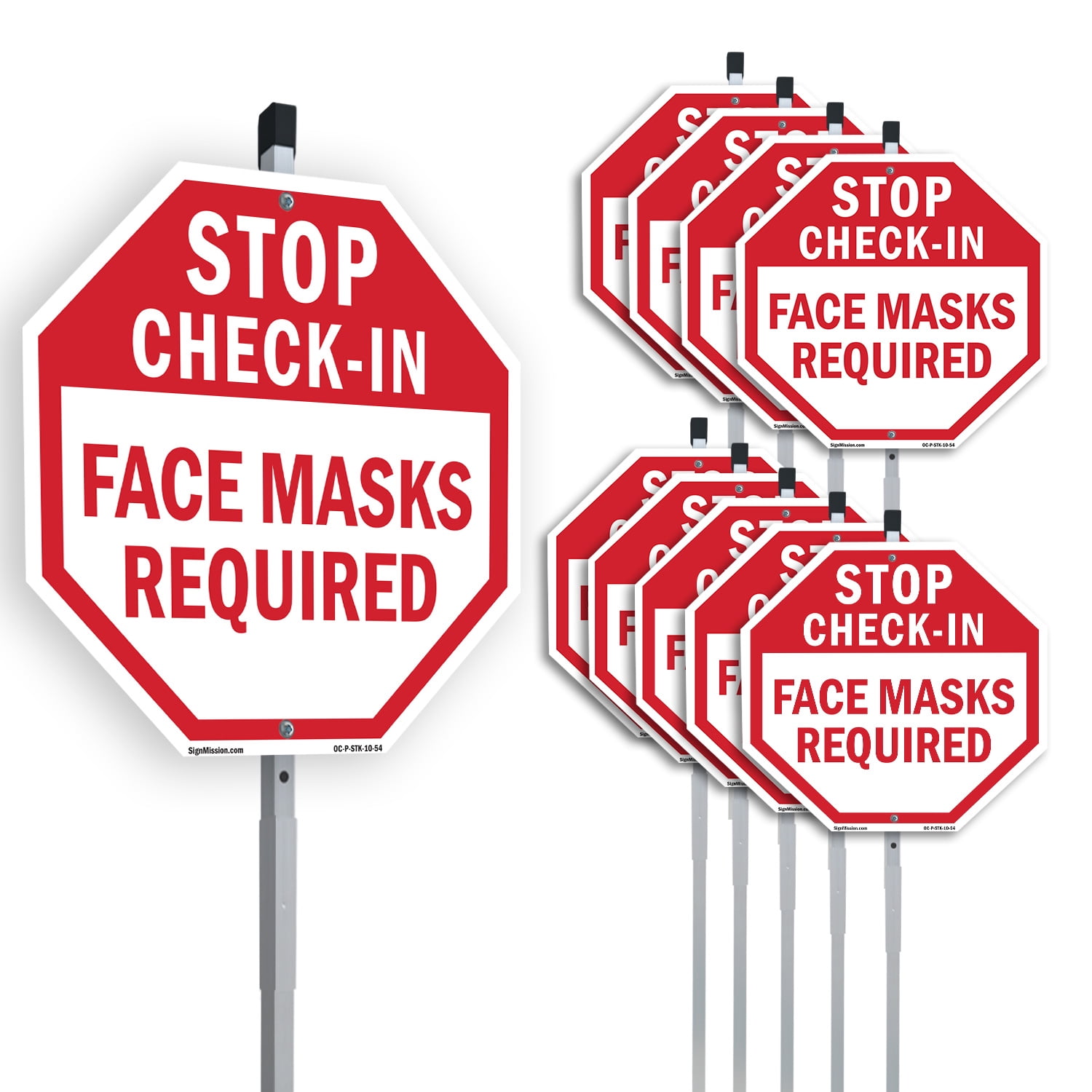 Stop Check-in Face Masks Required (10 Pack) 10 inch X 10 inch Octagon ...