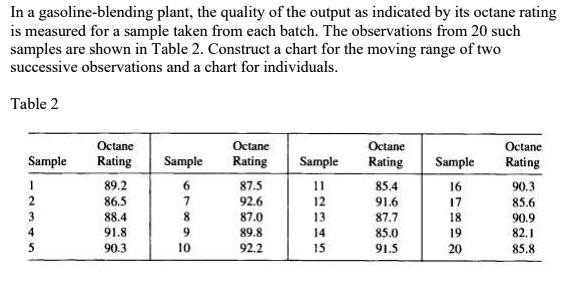 In a gasoline-blending plant, the quality of the output as indicated by ...