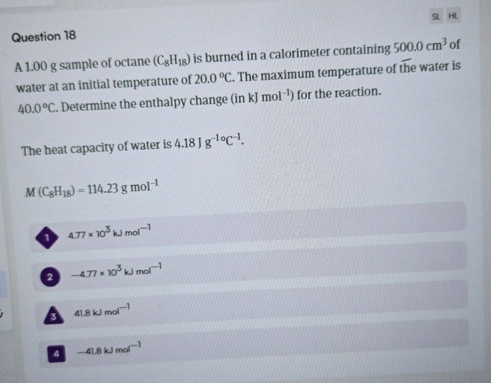 Solved A 1.000 g sample of octane (C8H18) is burned in a | Chegg.com