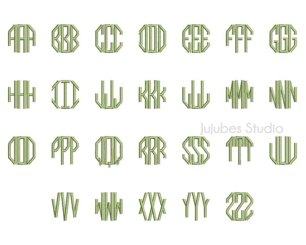 Octagon Monogram Machine Embroidery Font Alphabet - Rivermill Embroidery