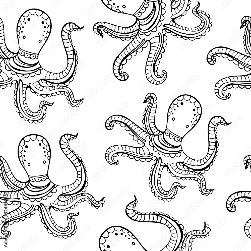 Hand drawn octopus coloring vector pattern for children and adults ...