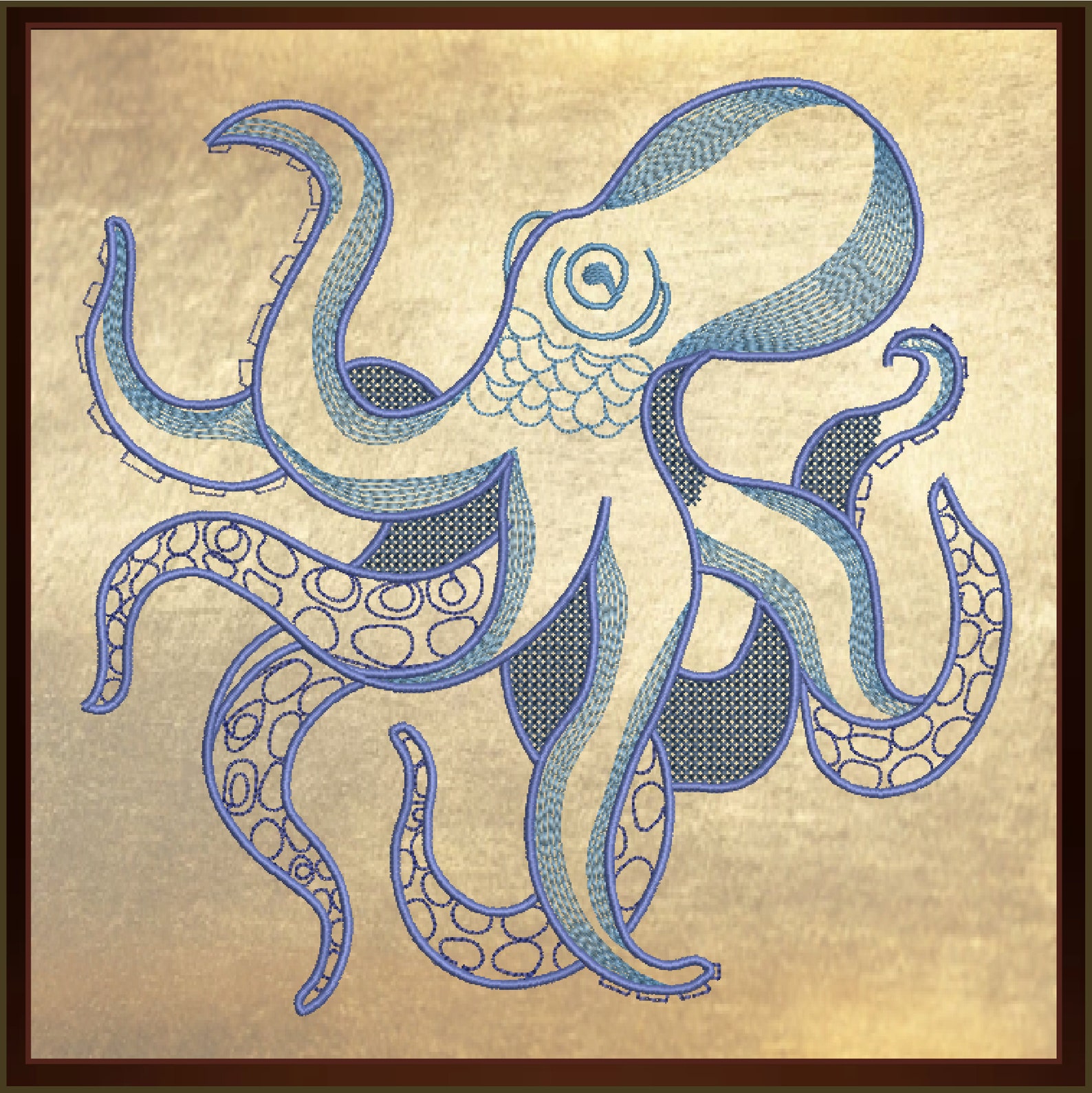Octopus Embroidery Design, Intricate Octopus Embroidery, Octopus Mini ...