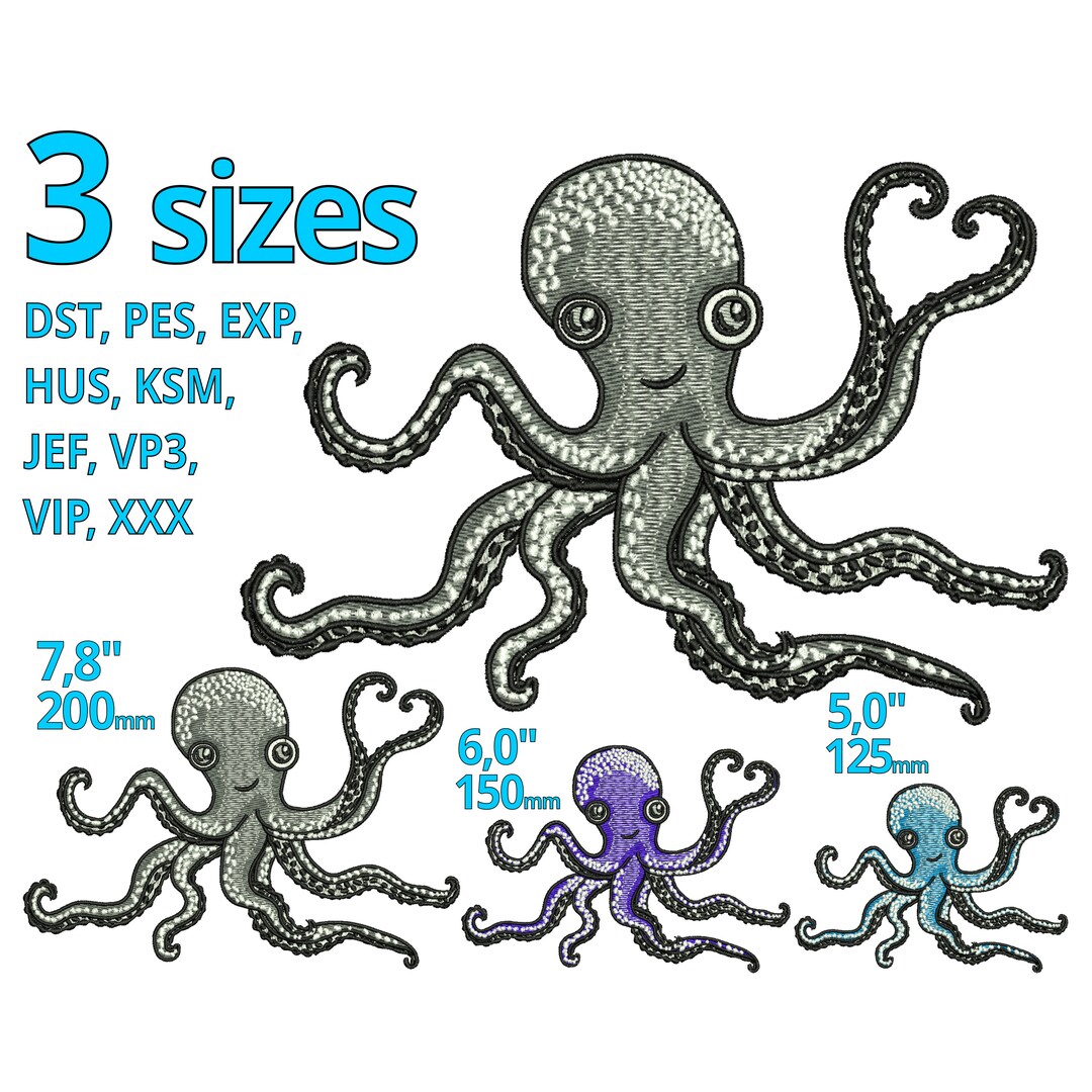 Octopus Machine Embroidery Design Octopus Embroidery | Etsy