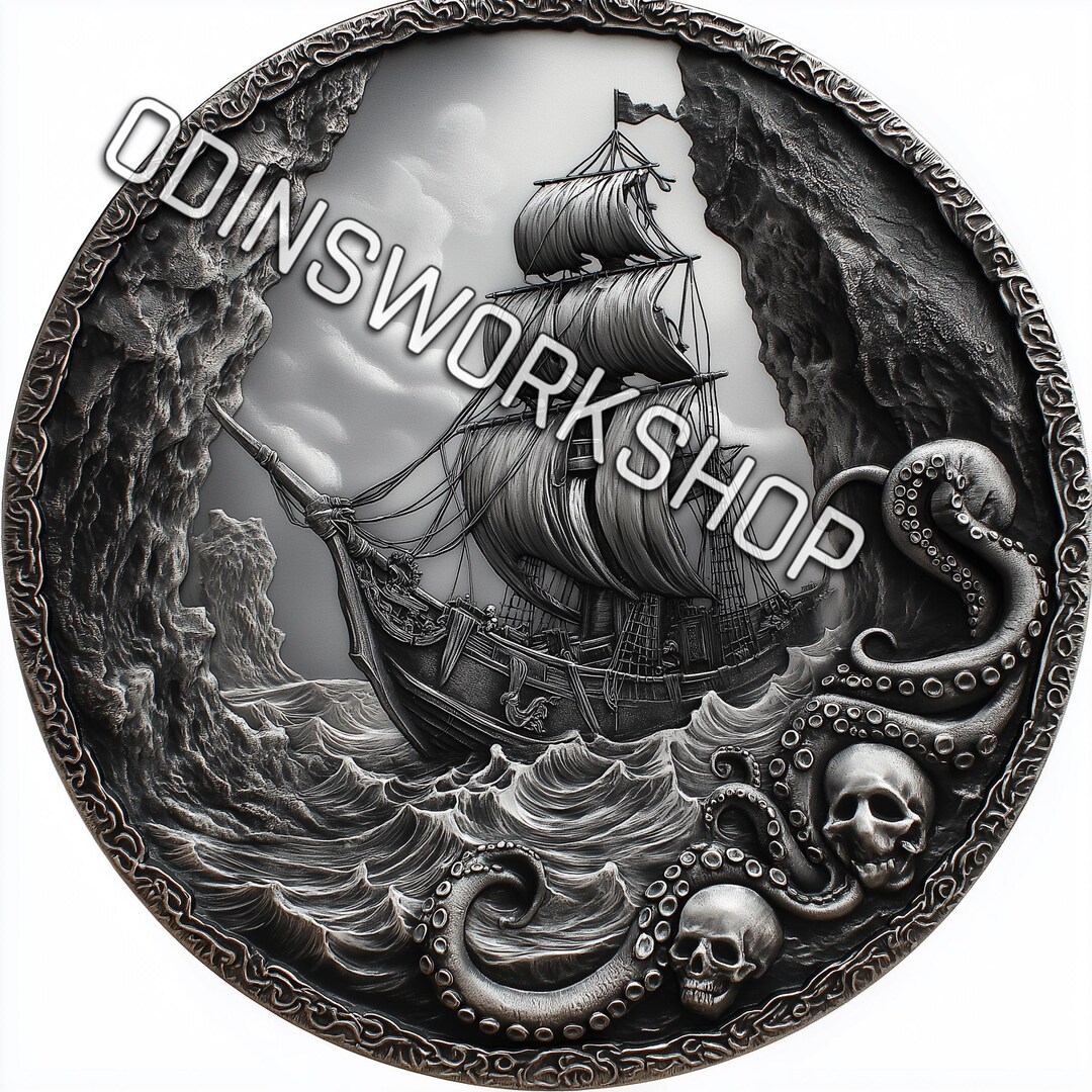 3D Embossing File: Pirate Ship & Octopus Coin Design (PNG Digital ...