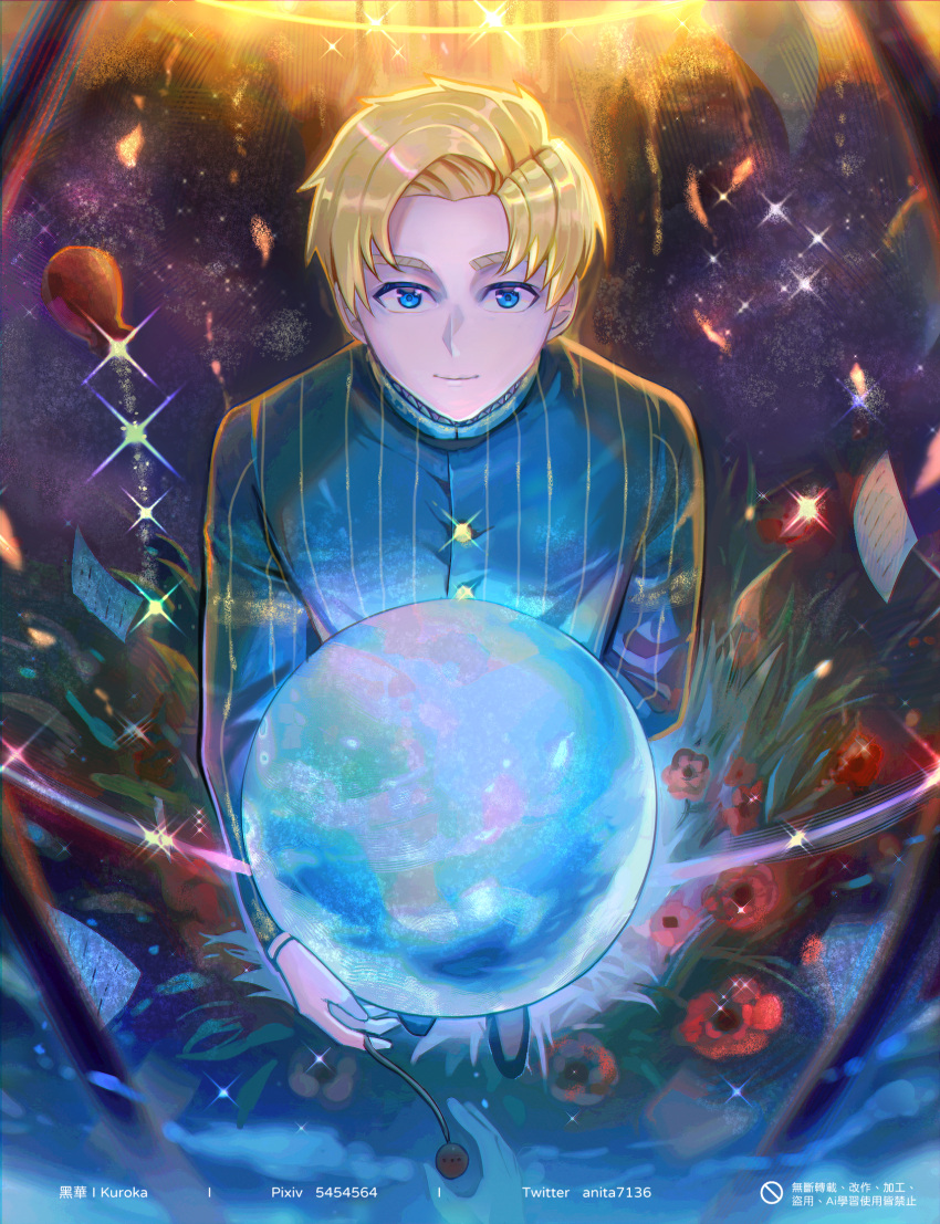 Safebooru - 1boy blonde hair blue eyes blue shirt chi.: chikyuu no ...