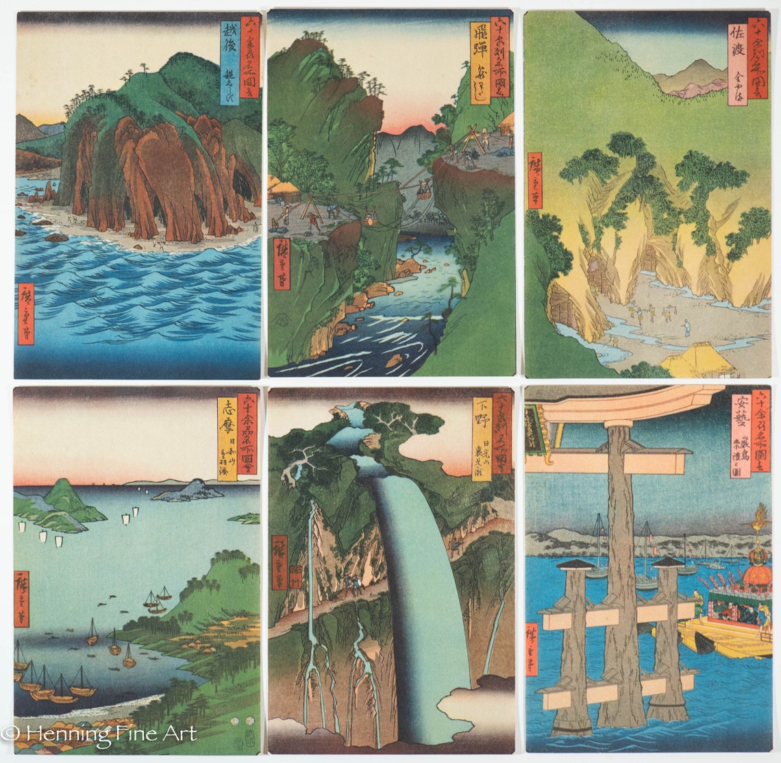Beautiful Vintage Japanese Woodblock Reproductions Hiroshige Sixty Odd ...