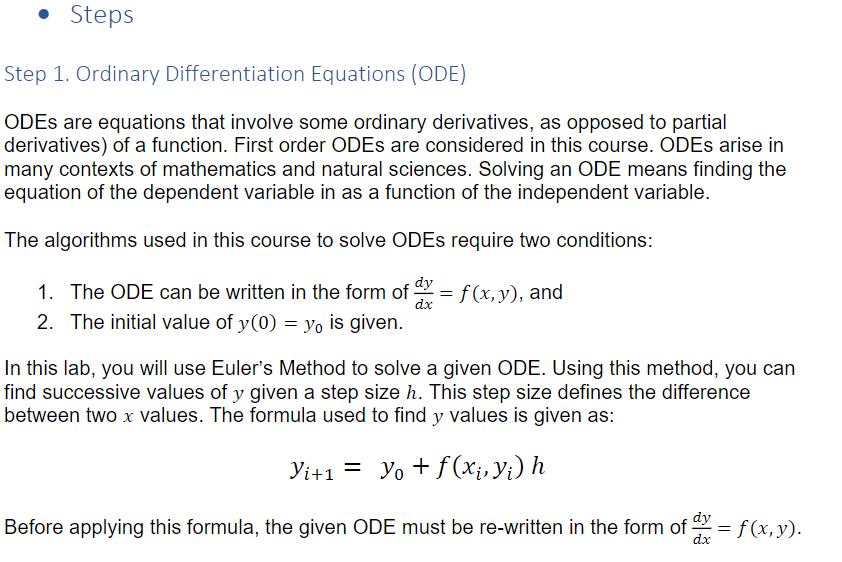 8.02: Euler’s Method for Solving Ordinary Differential Equations ...