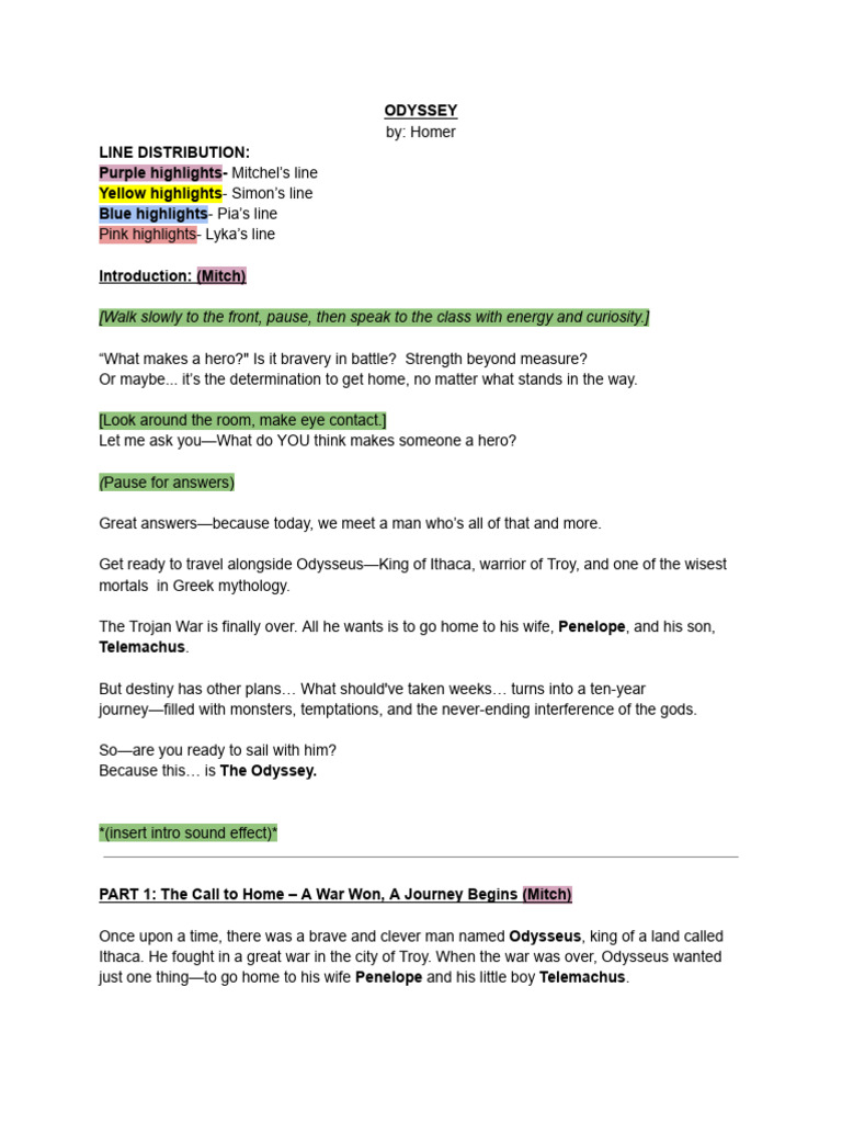 The Odyssey Script | PDF | Odysseus | Odyssey