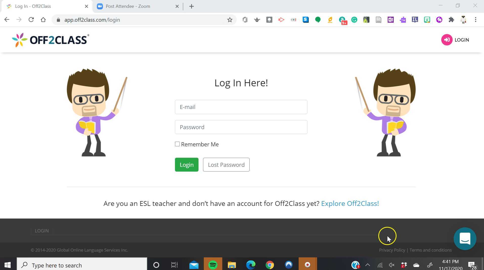 Off2Class Log in Procedure