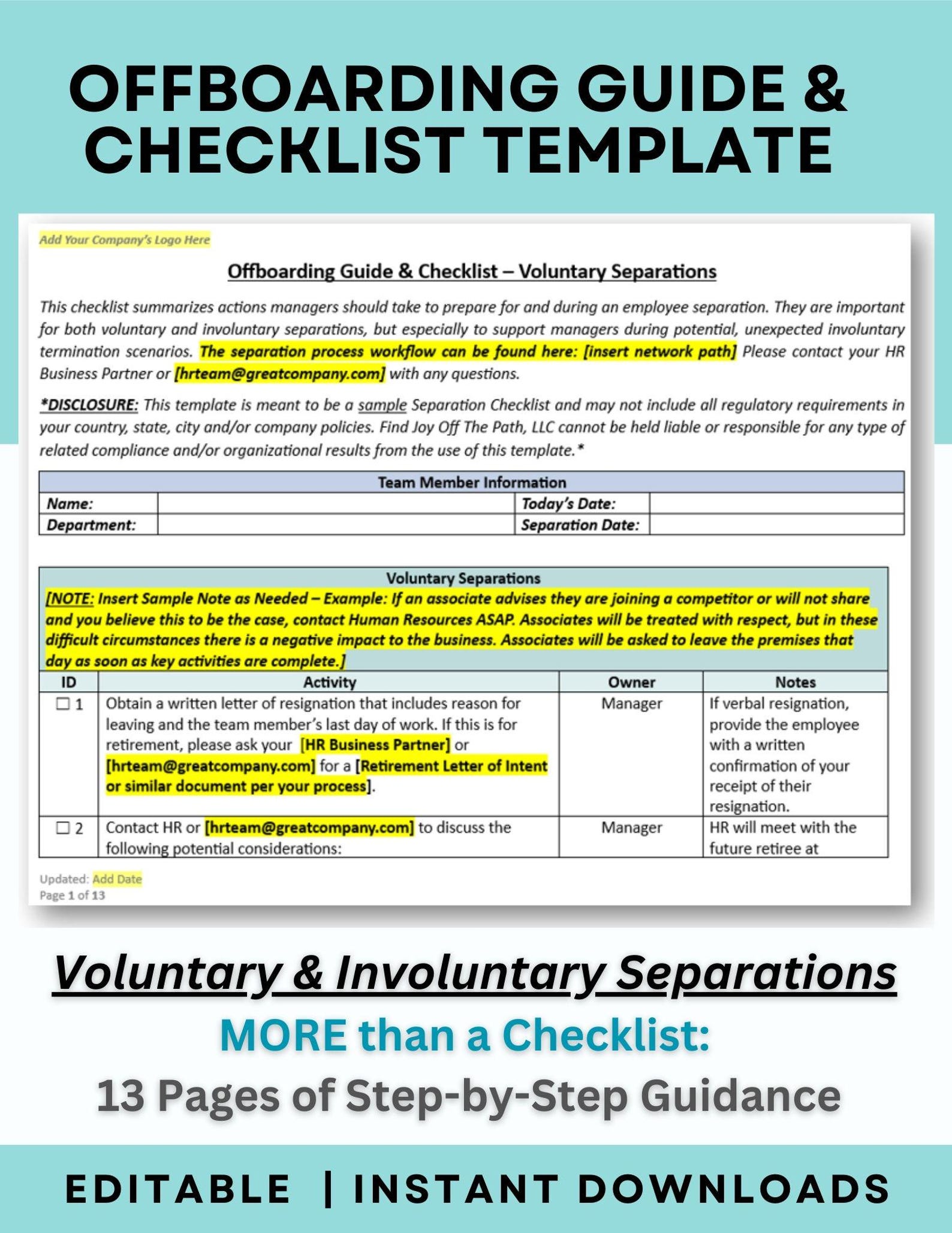 Offboarding Template Editable Word Checklist HR Templates - Etsy