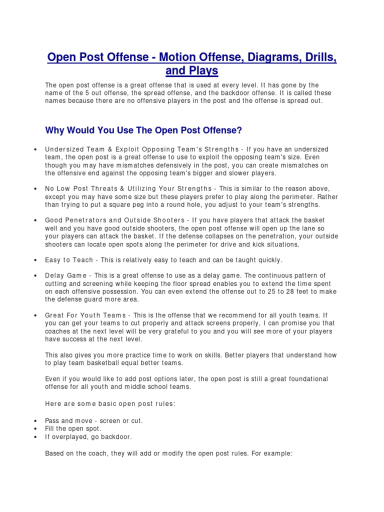 Open Post Offense - Motion Offense, Diagrams, Drills, and Plays | PDF ...