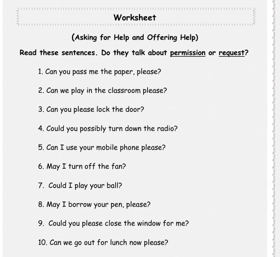 Offers, requests, asking for permiss…: English ESL worksheets pdf & doc